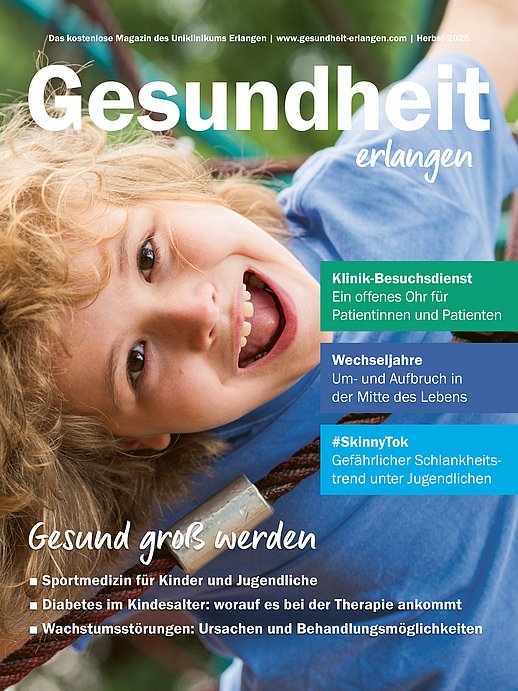 "Gesundheit erlangen" erscheint in einer Auflage von 22.000 Exemplaren im Stadtgebiet Erlangen, in Erlangen-Höchstadt, Forchheim und Bamberg. Jede Ausgabe widmet sich einem großen Titelthema – von Schilddrüse über Rückengesundheit bis hin zu Bluthochdruck, Depression und Diabetes. Daneben gibt es viele weitere Informationen zu konkreten Krankheitsbildern sowie modernen Diagnose- und Therapiemethoden, spannende Reportagen, Patientenporträts, Tipps zu gesunder Ernährung, Fitness und mehr. Einen besonderen Fokus legt „Gesundheit erlangen“ auf die Menschen am Uniklinikum Erlangen: behandelte Patientinnen und Patienten, aber auch Beschäftigte des Uniklinikums, die sich für die Gesundheit anderer engagieren.
