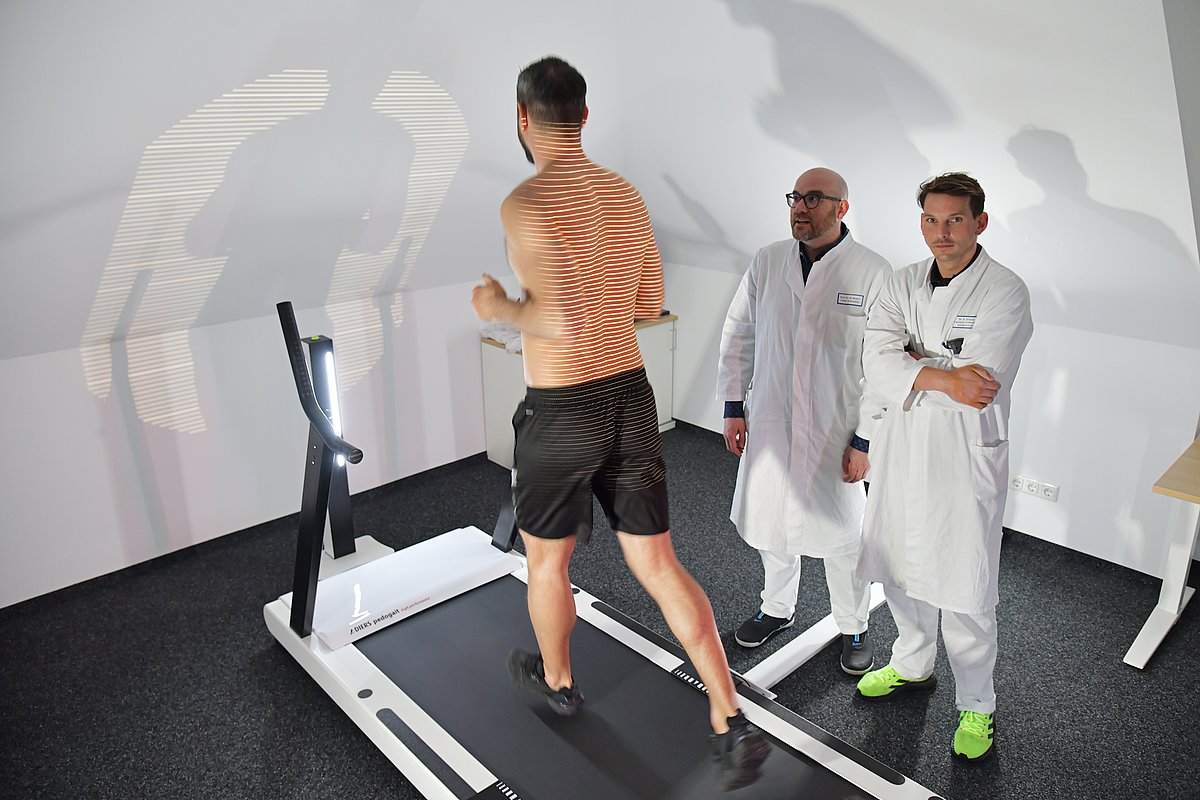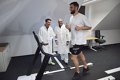 Ex-Fußballprofi Mergim Mavraj bei einer professionellen Laufband- und Bewegungsanalyse in der Unfallchirurgie-Orthopädie