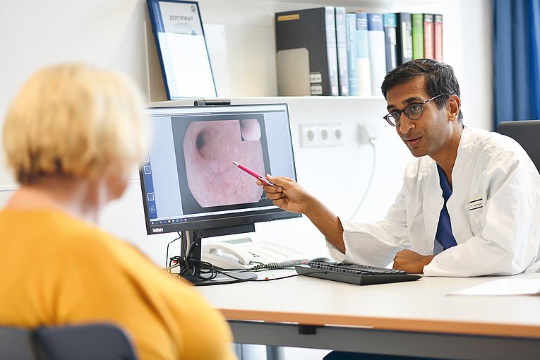Schleimig-blutige Durchfälle, Bauchschmerzen und Schwäche sind typische Symptome einer Colitis. „Aber die Colitis gibt es nicht − jede Patientin und jeder Patient hat seine eigene Erscheinungsform“, erklärt Prof. Dr. Raja Atreya, der Betroffene wie Roswitha R. behandelt und chronisch-entzündliche Darmerkrankungen (CED) wie Colitis ulcerosa und Morbus Crohn im Deutschen Zentrum Immuntherapie am Uni-Klinikum Erlangen erforscht. Ziel ist die Translation − der möglichst schnelle Sprung einer neuen Therapie vom Labor ans Patientenbett.