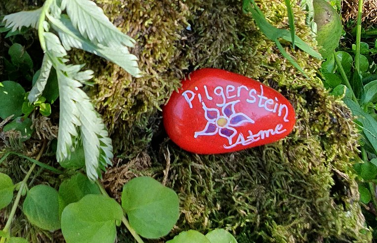 Der Lippische Pilgerweg führt entlang weiter Felder, vorbei an Fachwerkhäusern und durch stille Buchenwälder. Ihn säumen Obstbäume zum Naschen, markante Felsen, Schlösser, Türme und Kirchen. Wie die Wanderetappen müssen die Pilgernden auch ihre Krankheit bewältigen und dabei ihren eigenen Weg finden. Doch das Gehen in der Gruppe lehrt, dass sie dabei nicht allein sind; dass es Gefährtinnen und Gefährten gibt, die denselben Weg vor sich haben und dieselben Hindernisse überwinden müssen. Dabei dürfen alle unterwegs immer wieder stehenbleiben und erkennen, was alles Schönes und Stärkendes da ist, neben all der Anstrengung. Sonnenstrahlen, gute Gespräche, Kaffee und Kuchen am Nachmittag. „Trotz der täglichen Aktivität waren wir alle nach der Woche wirklich erholt, auch geistig. Das Gehen in der Natur empfand ich als entschleunigend und fast meditativ, die Reise zu Fuß auch irgendwie als Sinnbild für unsere Schritte im Leben“, so beschreibt es Susanne U. Immer wieder gibt es Phasen, in denen die Wandernden angehalten sind, nicht zu sprechen und die Natur in Ruhe auf sich wirken zu lassen – ihre Farben, Geräusche und Düfte. „Mit Fantasie entdeckte ich plötzlich ein Gesicht in der Rinde eines Baumes und unheimlich viele wunderschöne Pilze“, berichtet Sandra K. über ihre Erfahrungen im Pilgerherbst 2023. Tage- und wochenlange Fußmärsche sind für die 51-Jährige, der ein Teil ihrer Bauchspeicheldrüse fehlt, nicht neu. Seit ihrer NET-Diagnose lief sie schon den Camino Francés nach Santiago de Compostela, pilgerte auf dem Bayerisch-Schwäbischen Jakobsweg und entlang der Mosel. „Beim Gehen geht’s mir gut“, sagt sie. „Neu war für mich die Gruppe, weil ich vorher immer allein unterwegs war. Mit den anderen entstand eine ganz eigene Dynamik und Energie, durch die sich alle schnell öffnen konnten. Und die Organisation war top.“ Für Susanne U. gab das Zusammensein mit Mitbetroffenen den Ausschlag dafür, überhaupt loszulaufen. Bis zu ihrer ersten Pilgerreise 2022 besaß sie weder Wanderrucksack noch Outdoorjacke. Heute ist sie voll ausgestattet. In ihrem Rucksack befinden sich nun auch zwei Pilgersteine – beschriftet mit „Habe Mut“ und „Atme“. Gestaltet hat sie Mitpilgerin Sandra K. „Ich bemale die Steine, um sie zu verschenken oder sie auf Pilgerpfaden zu hinterlassen. Dort können andere Reisende sie einstecken und ein Stück mitnehmen“, sagt sie. Der Stein in der Hand – die kleine Erinnerung daran, dass jetzt gerade nur der Weg das Ziel ist.