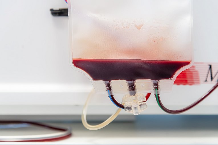 „Nur drei Prozent der Deutschen, die Blut spenden könnten, machen das auch“, ergänzt Dr. Achenbach. „Wir wollen mehr Menschen dazu bewegen und unseren Eigenbedarf am Uniklinikum langfristig noch stärker selbst decken“, sagt die Oberärztin. Die 5.500 Thrombozytenkonzentrate, die vor allem die Krebspatientinnen und -patienten des Uniklinikums jedes Jahr bekommen, stammen bereits aus der eigenen Herstellung. Und auch bei den Erythrozyten will die Transfusionsmedizin autark werden: Jährlich verbrauchen die Ärztinnen und Ärzte des Uniklinikums Erlangen ca. 20.000 Einheiten der roten Blutkörperchen – hauptsächlich bei großen Operationen, in der Intensivmedizin und bei Chemo- und Strahlentherapien.