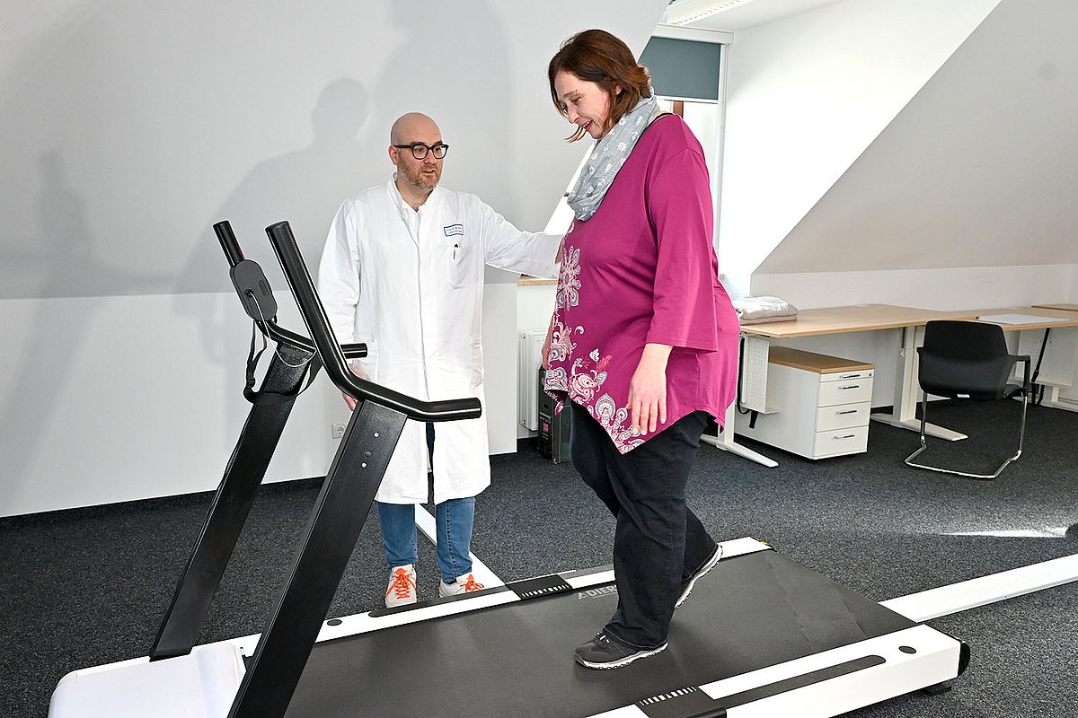 Patientin Silke Koch war offen gegenüber dem Mako-System, das seit August 2023 am Uniklinikum Erlangen eingesetzt wird. „Ich hatte vollstes Vertrauen in Professor Betsch und auch keine Angst vor dem Roboter“, so Silke Koch. „Um halb zwölf war ich am Tag der OP schon wieder in meinem Zimmer. Ich bin gleich selbstständig aufgestanden, um ins Bad zu gehen, und habe bereits mit der Krankengymnastik begonnen.“ Heute, knapp drei Monate nach dem Eingriff, kann Silke Koch schon wieder eineinhalb Stunden am Stück laufen und auch Treppen steigen. „Ich habe mir außerdem ein E-Bike gekauft und freue mich auf den ersten Thermenbesuch, den mein Sohn und ich für die Ferien geplant haben“, sagt Silke Koch. Bis sie ihrer Arbeit als Leiterin einer Mittagsbetreuung für Kinder wieder nachgehen kann, wird es noch etwas dauern: „Dafür müsste ich mindestens drei Stunden am Stück laufen können. Die Kinder sausen ja ständig hin und her – da muss man erst mal nachkommen.“ Bis dahin macht Silke Koch weiter fleißig Physiotherapie, um ihre Oberschenkelmuskulatur zu trainieren. „Durch meine Schonhaltung, die ich mir wegen der Schmerzen angewöhnt hatte, habe ich ganz andere Muskelbereiche benutzt.“ Ihr Knie kann die Patientin aber schon deutlich mehr beugen als vor der Implantation des künstlichen Gelenks. „Unser Ziel ist es, dass unsere Patientinnen und Patienten die Klinik mit einer Kniebeugung von 90 Grad verlassen“, betont Marcel Betsch. „Wir ermutigen sie dazu, schnell wieder fit zu werden. Weil Frau Koch durch ihr recht junges Alter eine gute Grundfitness mitgebracht hat, wird sie sicher schnell weitere Fortschritte machen.“