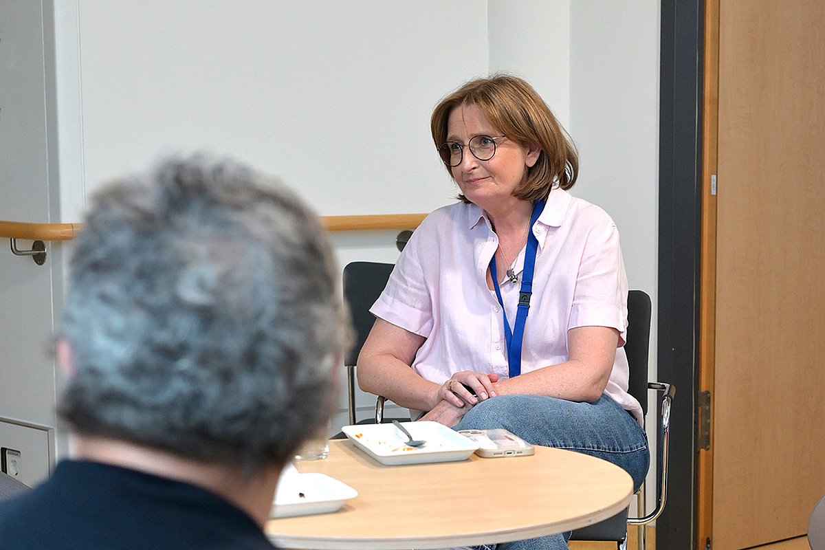 Das Gespräch im Patientencafé ist in vollem Gang: Es geht ums Wetter, das Spiel der Frauenfußballnationalmannschaft am Vorabend und die Parkplatzsituation in Erlangen. „Es ist zwar nur ein Nachmittag pro Woche. Aber eben ein Nachmittag, an dem man ein bisschen Kurzweiligkeit erleben und auf andere Gedanken kommen kann“, sagt Dr. Martina Madl, leitende Psychologin des Psychoonkologischen Diensts, eines Bereichs der Psychosomatischen und Psychotherapeutischen Abteilung. Gemeinsam mit ihren Kolleginnen und Kollegen begleitet sie jedes Jahr rund 2.500 Krebspatientinnen und -patienten sowie Angehörige bei der Krankheitsbewältigung. Auch der Psychoonkologische Dienst steht Betroffenen beim Patientencafé zur Seite – denn auch Ängste und Sorgen sollen hier Raum haben dürfen: „Wenn wir merken, dass einer Patientin oder einem Patienten etwas auf der Seele liegt, ziehen wir uns in eine ruhige Ecke zurück und sprechen mit ihr oder ihm unter vier Augen – so können wir individuell auf die Bedürfnisse der Anwesenden eingehen“, erklärt Dr. Madl.