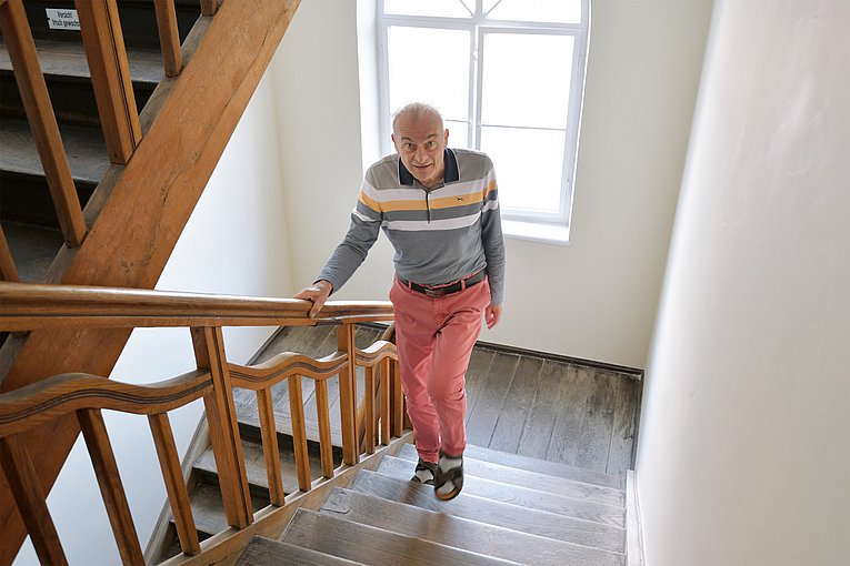 60 Stufen. So weit ist es bis in den dritten Stock, zur Wohnung von Wolfgang Friedel im Nürnberger Osten. „In der Reha habe ich mit 10 Stufen angefangen. Jetzt bin ich bei 50 am Stück“, sagt er. Schwer krank war der heute 72-Jährige nie. Bis auf ein operiertes Fußballerknie, eine gerissene Achillessehne und Bluthochdruck fehlte ihm nichts. Sport und Bewegung spielten immer eine Rolle im Leben von Wolfgang Friedel: 25 Jahre Fußball, dazu Golf. Seit fast 20 Jahren bringt er als Golflehrer anderen den Abschlag bei. „Anfang August möchte ich wieder anfangen und meine erste Stunde geben. Ich kann ja mit dem Cart fahren und muss nicht alles laufen“, sagt er.